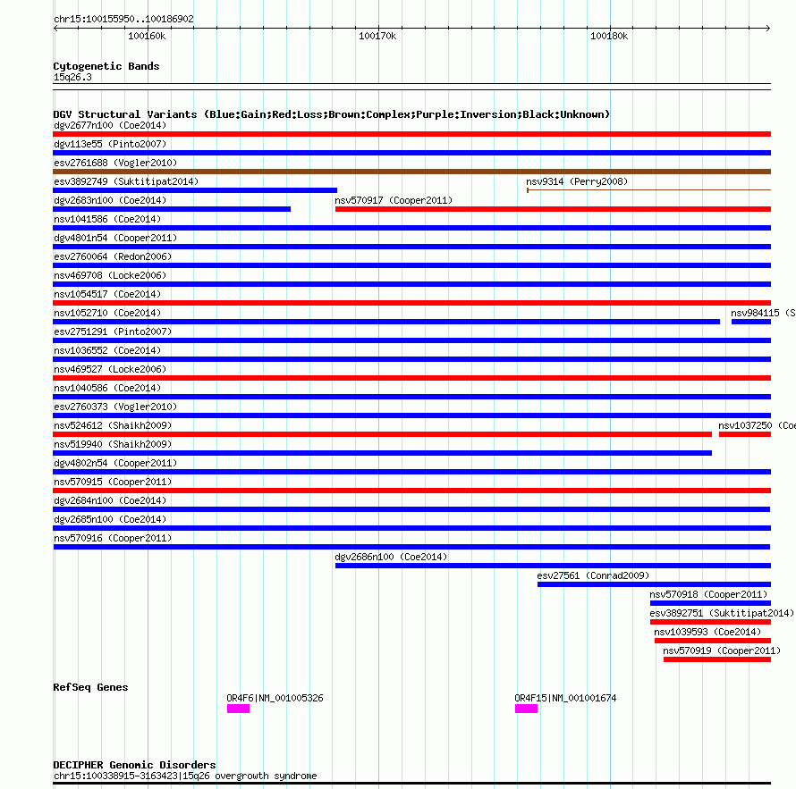 Variant DetailsVariant: nsv570916| Internal ID | 16011639 | | Landmark | | | Location Information | | | Cytoband | 15q26.3 | | Allele length | | Assembly | Allele length | | hg38 | 30953 | | hg19 | 30953 | | hg18 | 30953 |