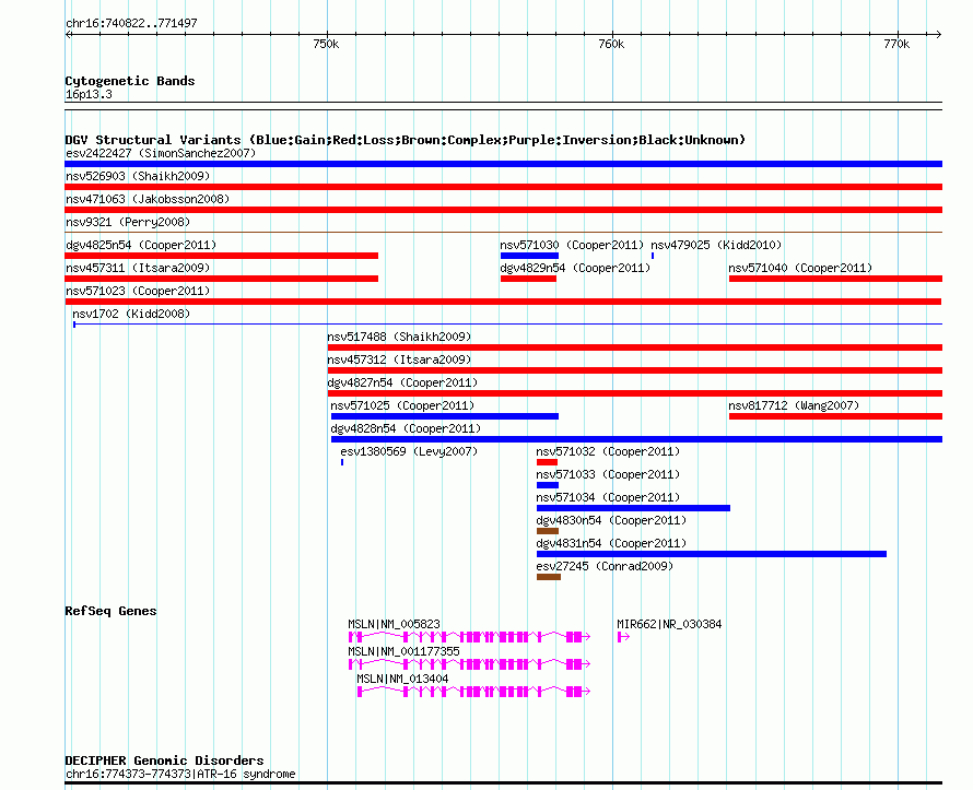 Variant DetailsVariant: nsv571023| Internal ID | 16358432 | | Landmark | | | Location Information | | | Cytoband | 16p13.3 | | Allele length | | Assembly | Allele length | | hg38 | 30676 | | hg19 | 30676 | | hg18 | 30676 |