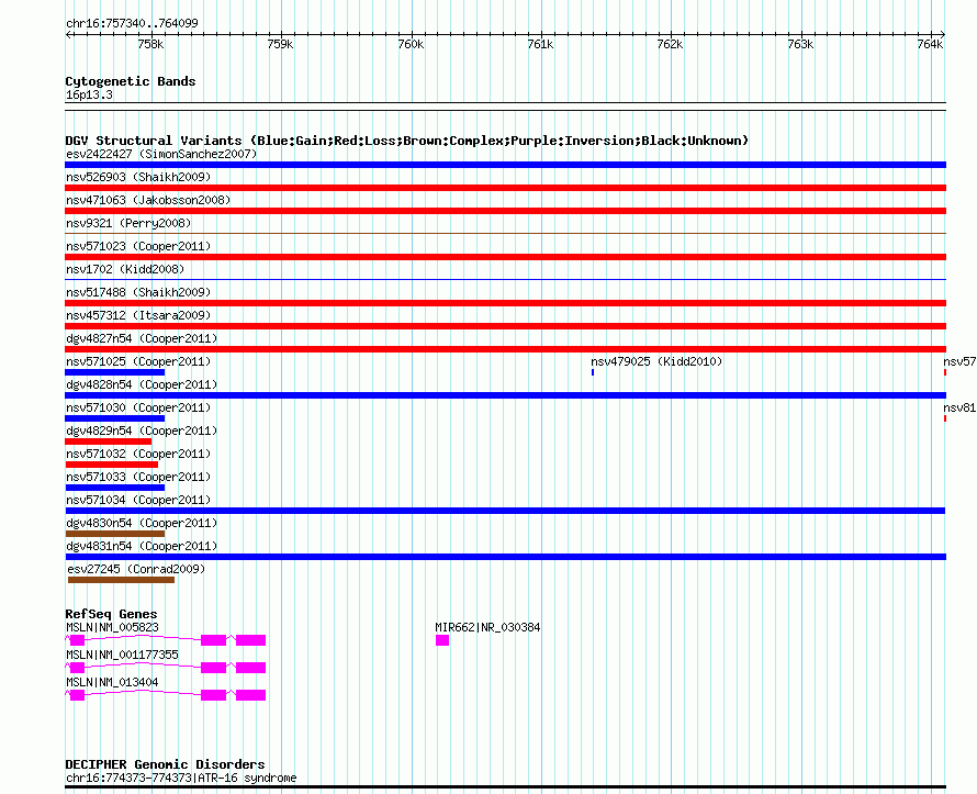 Variant DetailsVariant: nsv571034| Internal ID | 16358443 | | Landmark | | | Location Information | | | Cytoband | 16p13.3 | | Allele length | | Assembly | Allele length | | hg38 | 6760 | | hg19 | 6760 | | hg18 | 6760 |