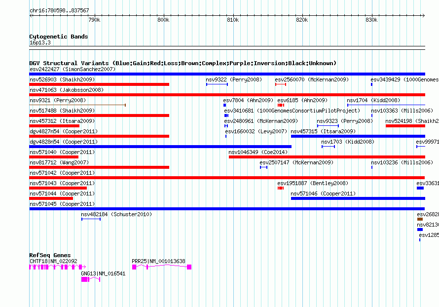 Variant DetailsVariant: nsv571045| Internal ID | 16011768 | | Landmark | | | Location Information | | | Cytoband | 16p13.3 | | Allele length | | Assembly | Allele length | | hg38 | 56970 | | hg19 | 56970 | | hg18 | 56970 |