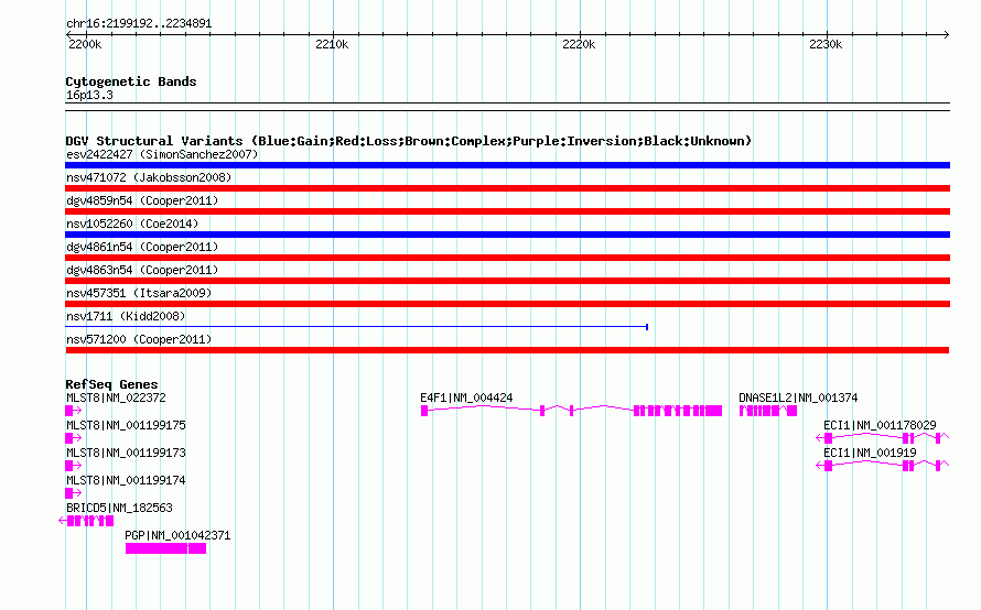 Variant DetailsVariant: nsv571200| Internal ID | 16358609 | | Landmark | | | Location Information | | | Cytoband | 16p13.3 | | Allele length | | Assembly | Allele length | | hg38 | 35700 | | hg19 | 35700 | | hg18 | 35700 |