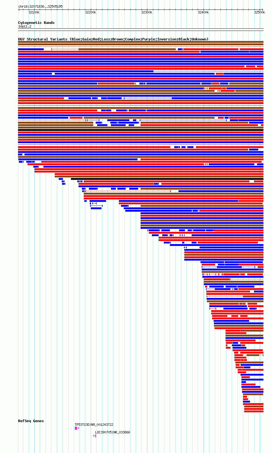 | | Variant Type | CNV gain | | Copy Number | | | Allele State | | | Allele Origin | | | Probe Count | | | Validation Flag | | | Merged Status | M | | Merged Variants | dgv4991n54 | | Supporting Variants | nssv855511 | | Samples | | | Known Genes | LOC390705, TP53TG3D | | Method | SNP array | | Analysis | Illumina SNP array copy number analysis | | Platform | Not reported | | Comments | | | Reference | Cooper_et_al_2011 | | Pubmed ID | 21841781 | | Accession Number(s) | nsv571832