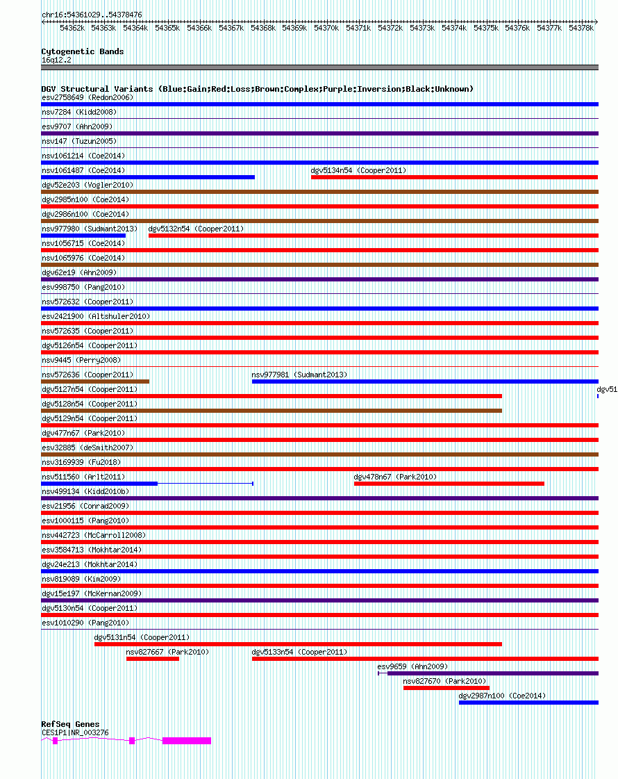 Variant DetailsVariant: nsv572668| Internal ID | 16360077 | | Landmark | | | Location Information | | | Cytoband | 16q12.2 | | Allele length | | Assembly | Allele length | | hg38 | 17448 | | hg19 | 17448 | | hg18 | 17448 |