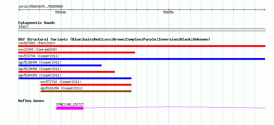 | | Variant Type | CNV gain | | Copy Number | | | Allele State | | | Allele Origin | | | Probe Count | | | Validation Flag | | | Merged Status | M | | Merged Variants | | | Supporting Variants | nssv857755, nssv857754 | | Samples | | | Known Genes | CPNE2 | | Method | SNP array | | Analysis | Illumina SNP array copy number analysis | | Platform | Not reported | | Comments | | | Reference | Cooper_et_al_2011 | | Pubmed ID | 21841781 | | Accession Number(s) | nsv572704