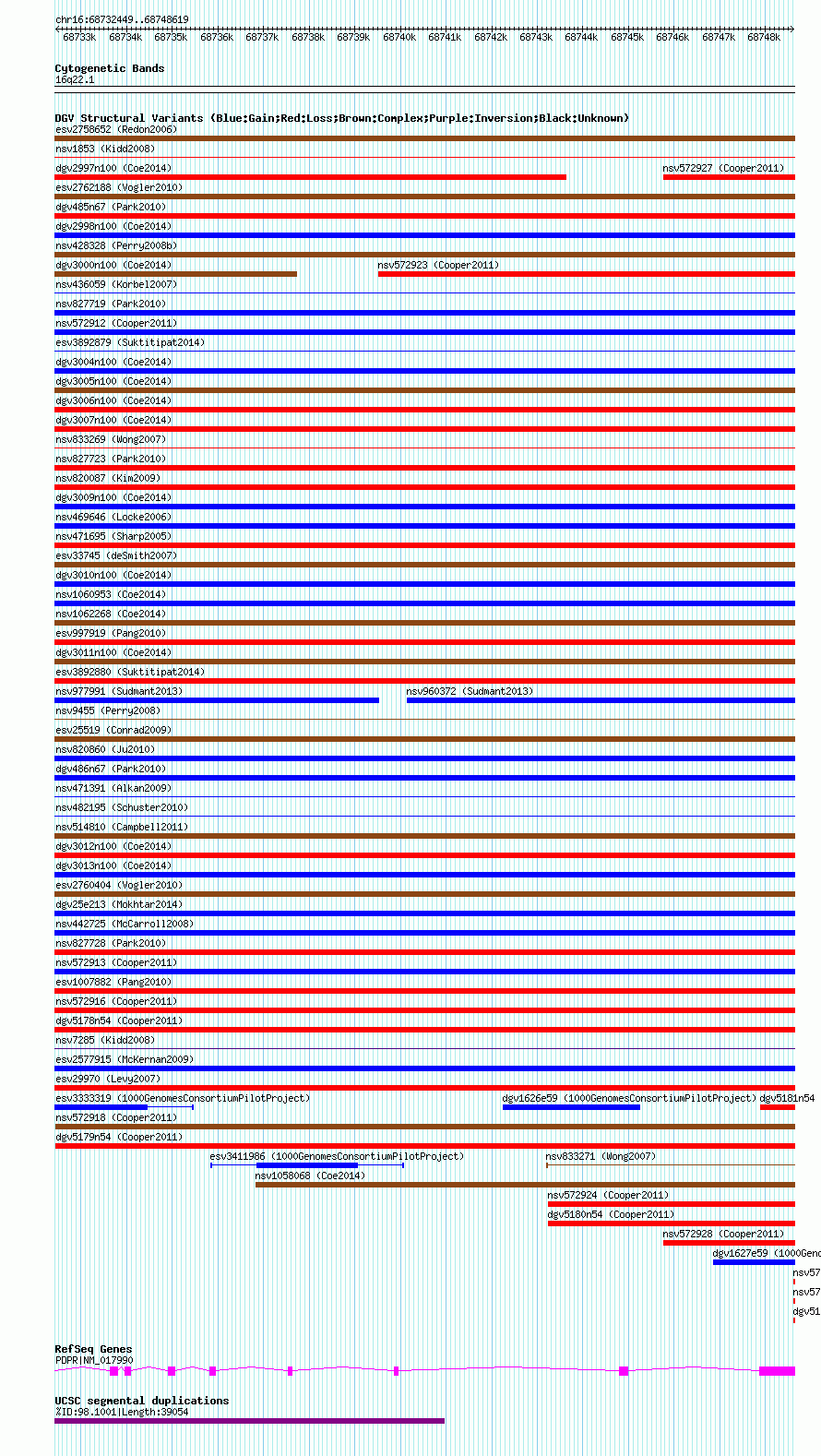 | Cytoband | 16q22.1 |