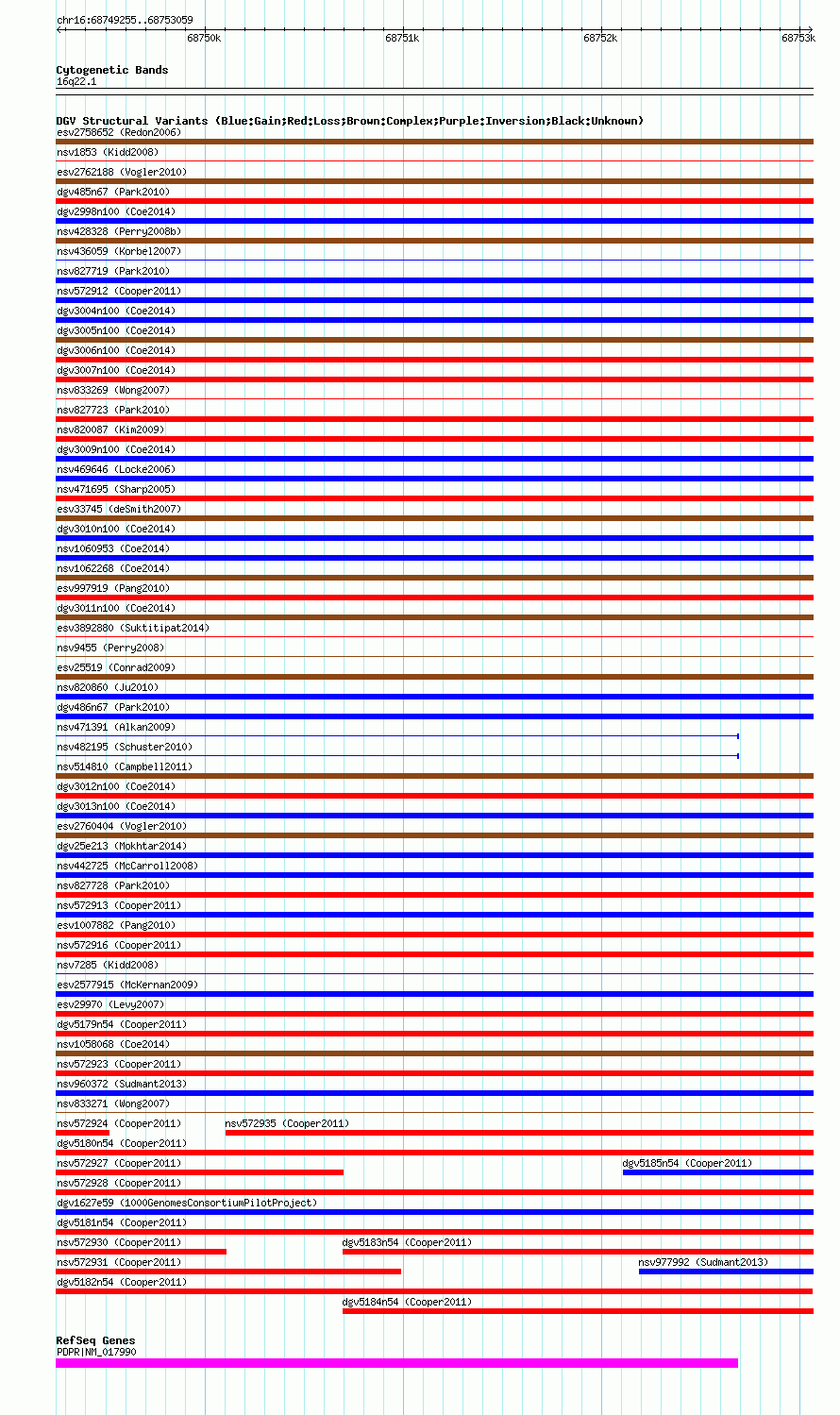 | Cytoband | 16q22.1 |