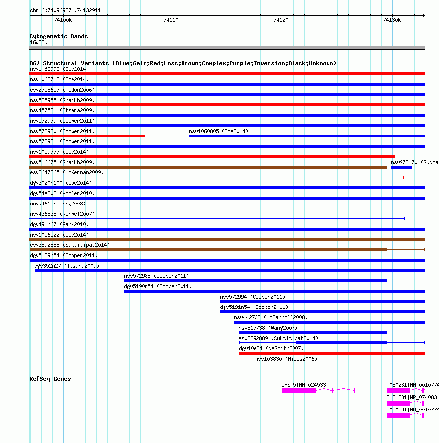 Variant DetailsVariant: nsv572983| Internal ID | 16013706 | | Landmark | | | Location Information | | | Cytoband | 16q23.1 | | Allele length | | Assembly | Allele length | | hg38 | 35975 | | hg19 | 35975 | | hg18 | 35975 |