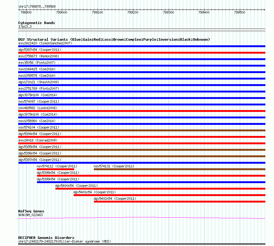 Variant DetailsVariant: nsv574105| Internal ID | 16361514 | | Landmark | | | Location Information | | | Cytoband | 17p13.3 | | Allele length | | Assembly | Allele length | | hg38 | 692 | | hg19 | 692 | | hg18 | 692 |