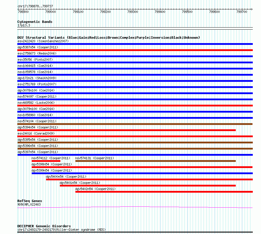 Variant DetailsVariant: nsv574108 | Internal ID | 16361517 | | Landmark | | | Location Information | | | Cytoband | 17p13.3 | | Allele length | | Assembly | Allele length | | hg38 | 860 | | hg19 | 860 | | hg18 | 860 |