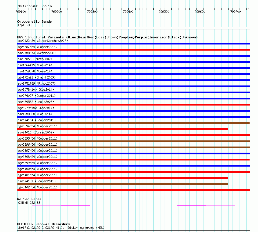 Variant DetailsVariant: nsv574132| Internal ID | 16361541 | | Landmark | | | Location Information | | | Cytoband | 17p13.3 | | Allele length | | Assembly | Allele length | | hg38 | 648 | | hg19 | 648 | | hg18 | 648 |