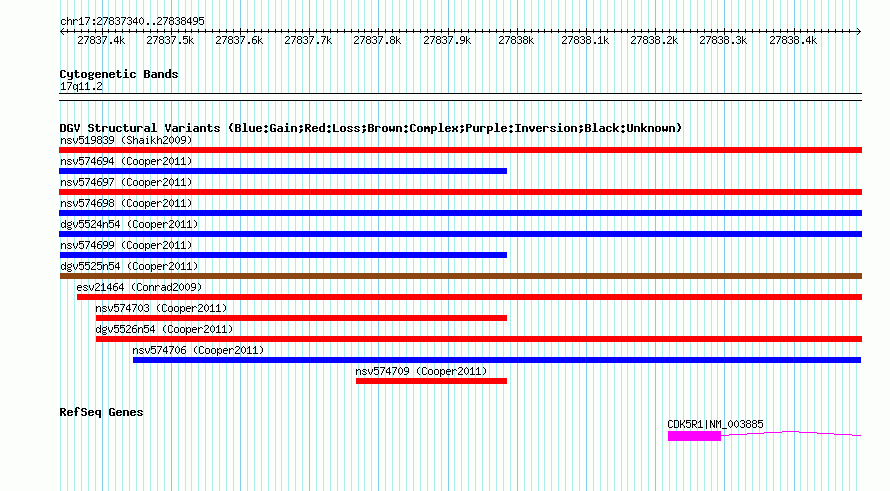 | | Variant Type | CNV gain+loss | | Copy Number | | | Allele State | | | Allele Origin | | | Probe Count | | | Validation Flag | | | Merged Status | M | | Merged Variants | dgv5525n54 | | Supporting Variants | nssv869611, nssv869614, nssv869612, nssv869615, nssv869613 | | Samples | | | Known Genes | CDK5R1 | | Method | SNP array | | Analysis | Illumina SNP array copy number analysis | | Platform | Not reported | | Comments | | | Reference | Cooper_et_al_2011 | | Pubmed ID | 21841781 | | Accession Number(s) | nsv574700