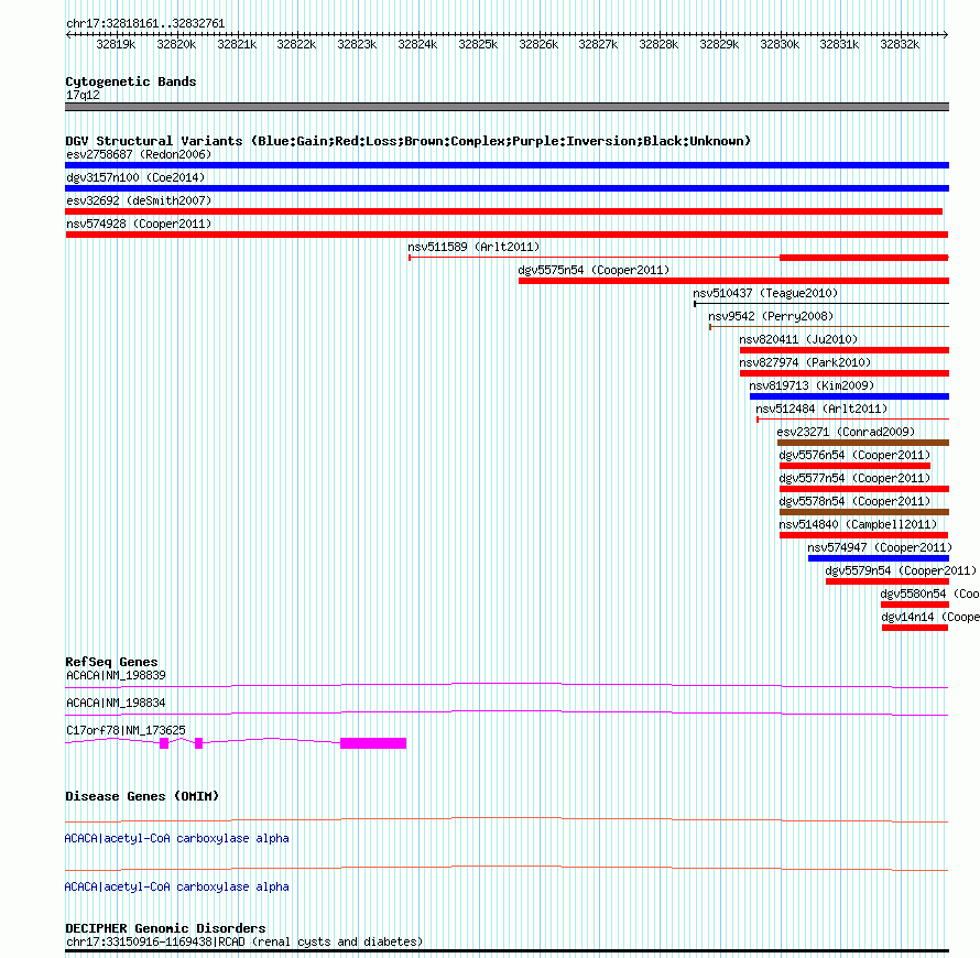 Variant DetailsVariant: nsv574928| Internal ID | 16362337 | | Landmark | | | Location Information | | | Cytoband | 17q12 | | Allele length | | Assembly | Allele length | | hg38 | 11530 | | hg19 | 14601 | | hg18 | 14601 |