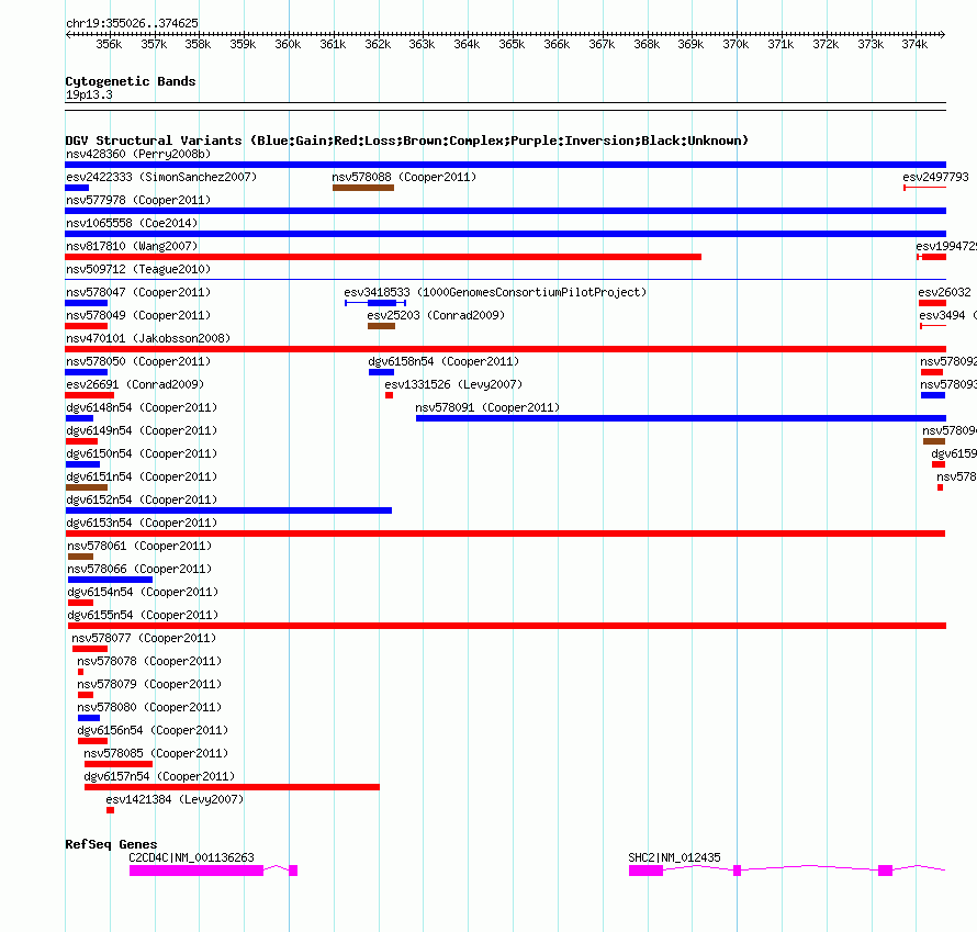 Variant DetailsVariant: nsv578059| Internal ID | 16365468 | | Landmark | | | Location Information | | | Cytoband | 19p13.3 | | Allele length | | Assembly | Allele length | | hg38 | 19600 | | hg19 | 19600 | | hg18 | 19600 |