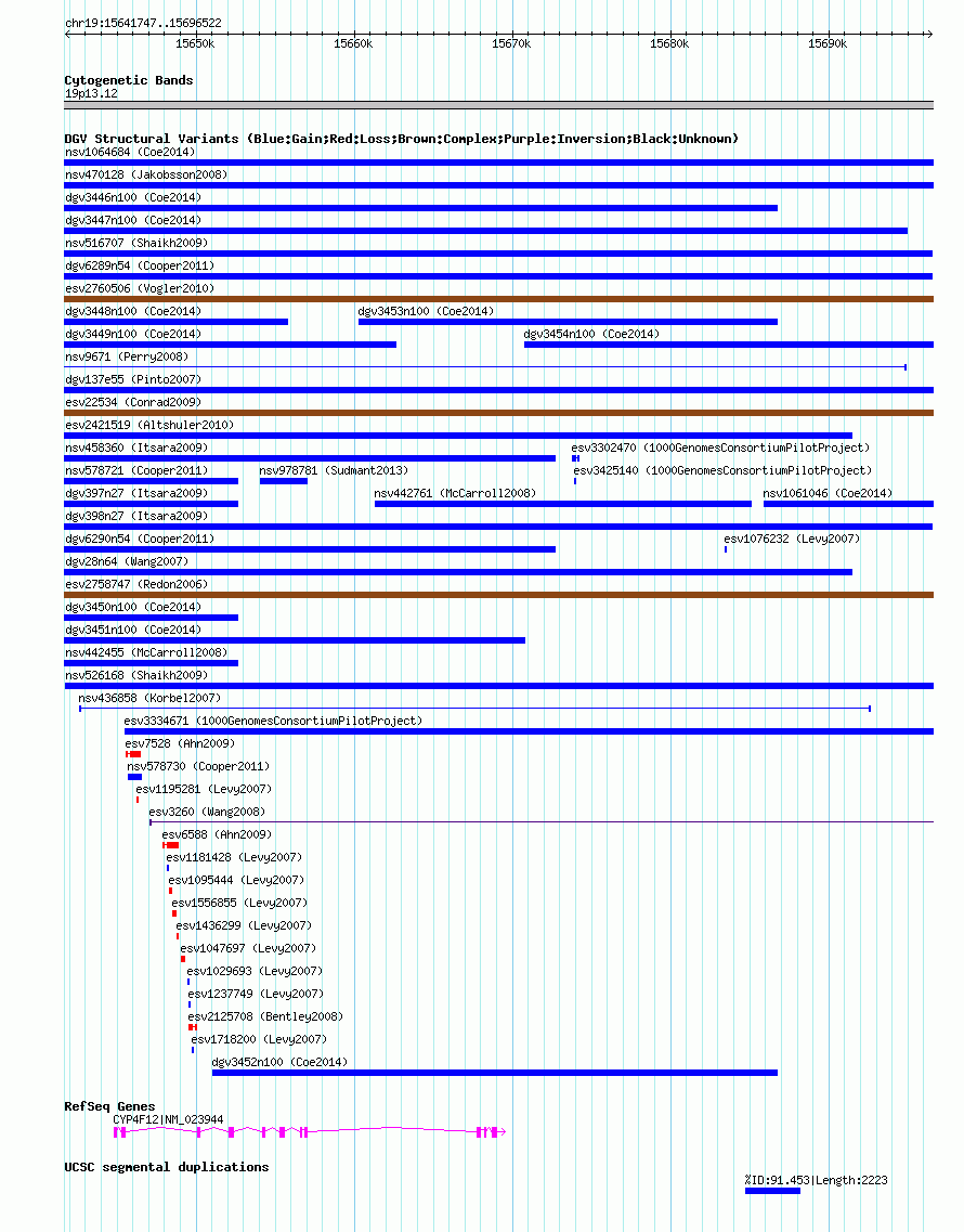 Variant DetailsVariant: nsv578727| Internal ID | 16019450 | | Landmark | | | Location Information | | | Cytoband | 19p13.12 | | Allele length | | Assembly | Allele length | | hg38 | 54776 | | hg19 | 54776 | | hg18 | 54776 |