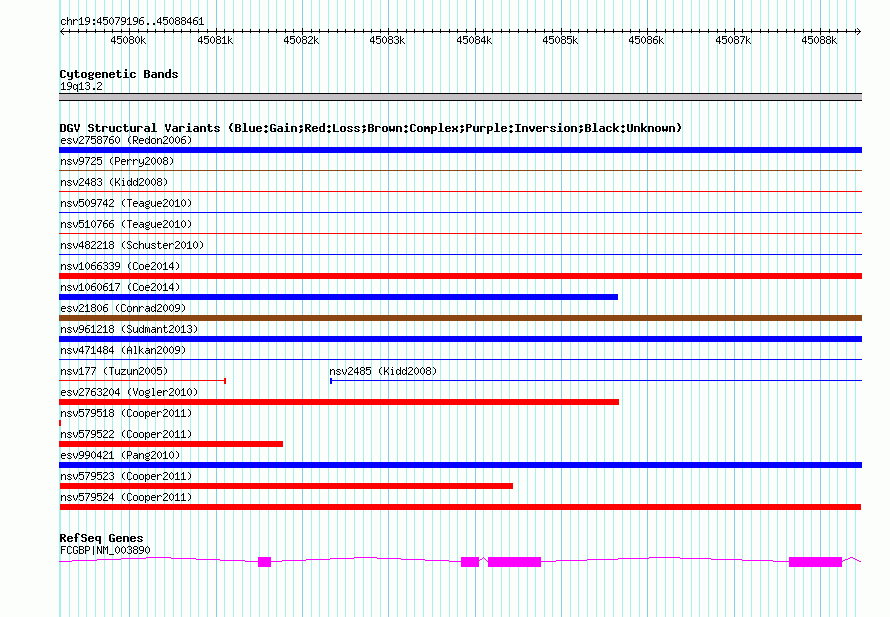 Variant DetailsVariant: nsv579524| Internal ID | 16366933 | | Landmark | | | Location Information | | | Cytoband | 19q13.2 | | Allele length | | Assembly | Allele length | | hg38 | 9530 | | hg19 | 9266 | | hg18 | 9266 |
