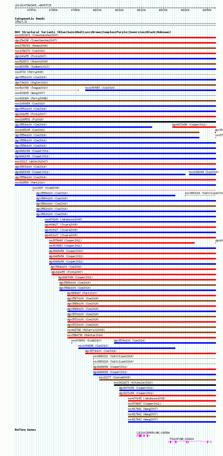 Variant DetailsVariant: nsv579641| Internal ID | 16367050 | | Landmark | | | Location Information | | | Cytoband | 19q13.2 | | Allele length | | Assembly | Allele length | | hg38 | 91321 | | hg19 | 91321 | | hg18 | 91321 |