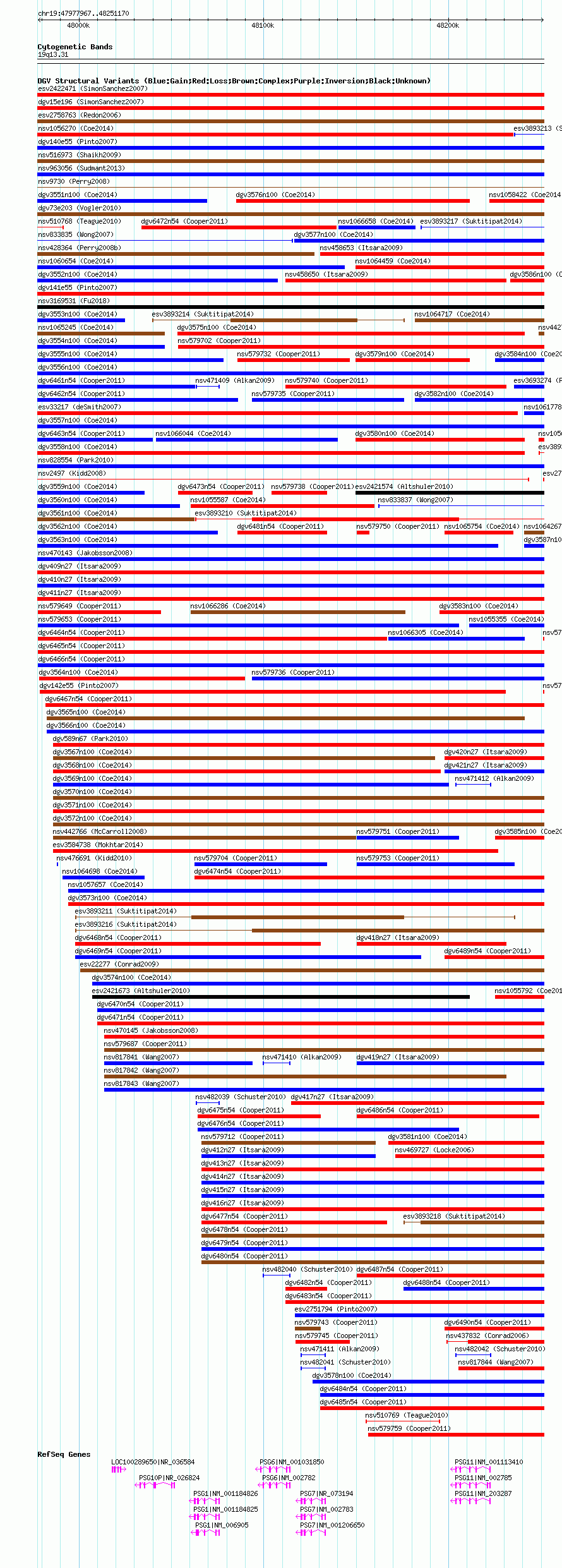 Variant DetailsVariant: nsv579655| Internal ID | 16367064 | | Landmark | | | Location Information | | | Cytoband | 19q13.2 | | Allele length | | Assembly | Allele length | | hg38 | 273204 | | hg19 | 273204 | | hg18 | 273204 |
