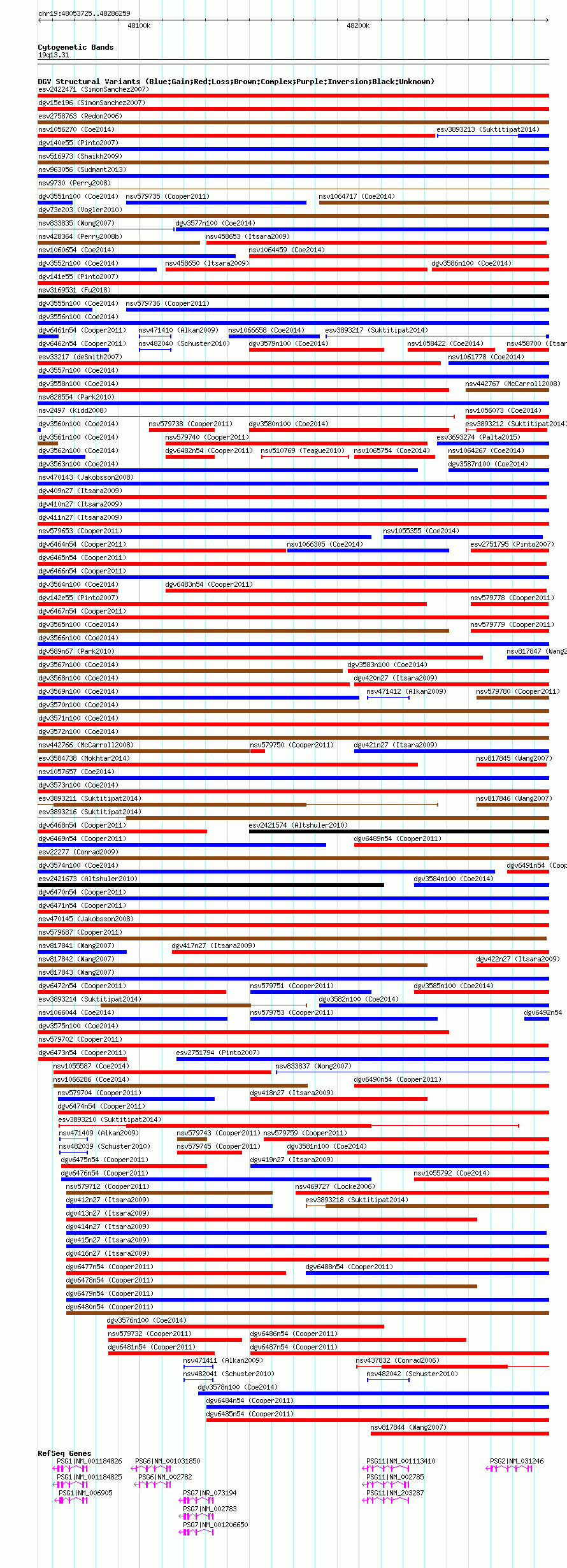 Variant DetailsVariant: nsv579702| Internal ID | 16367111 | | Landmark | | | Location Information | | | Cytoband | 19q13.2 | | Allele length | | Assembly | Allele length | | hg38 | 232535 | | hg19 | 232535 | | hg18 | 232535 |