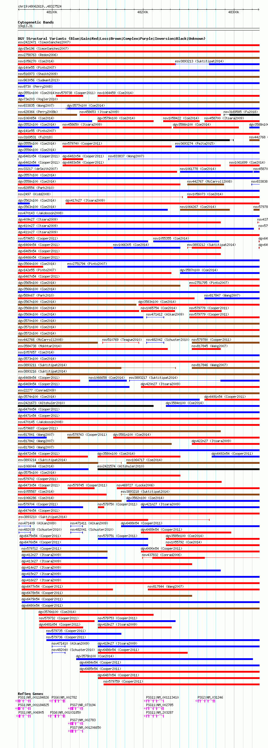 Variant DetailsVariant: nsv579705| Internal ID | 16367114 | | Landmark | | | Location Information | | | Cytoband | 19q13.2 | | Allele length | | Assembly | Allele length | | hg38 | 264906 | | hg19 | 264906 | | hg18 | 264906 |
