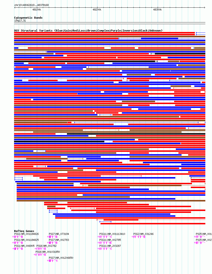 Variant DetailsVariant: nsv579706| Internal ID | 16367115 | | Landmark | | | Location Information | | | Cytoband | 19q13.2 | | Allele length | | Assembly | Allele length | | hg38 | 315550 | | hg19 | 315550 | | hg18 | 315550 |