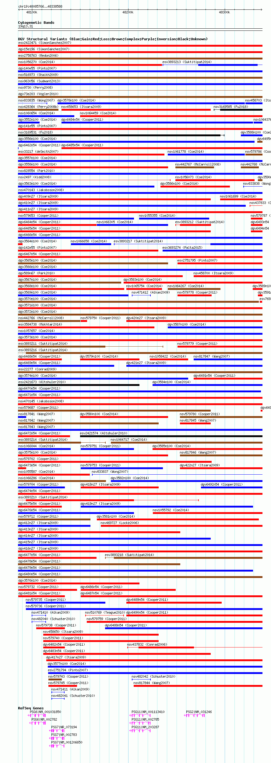 Variant DetailsVariant: nsv579733| Internal ID | 16367142 | | Landmark | | | Location Information | | | Cytoband | 19q13.2 | | Allele length | | Assembly | Allele length | | hg38 | 252823 | | hg19 | 252823 | | hg18 | 252823 |
