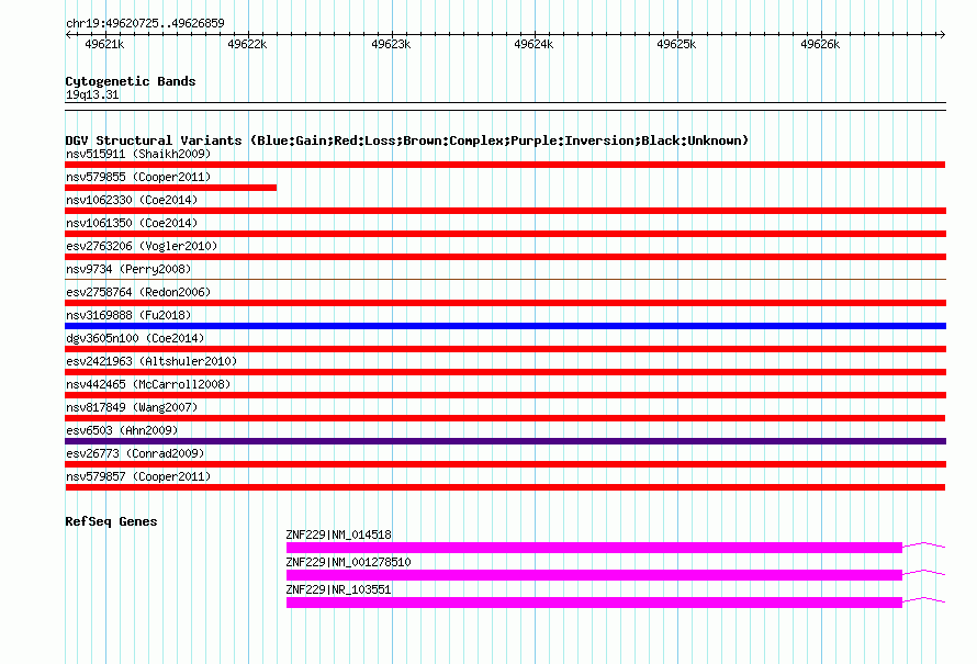 Variant DetailsVariant: nsv579857| Internal ID | 16367266 | | Landmark | | | Location Information | | | Cytoband | 19q13.31 | | Allele length | | Assembly | Allele length | | hg38 | 6132 | | hg19 | 6135 | | hg18 | 6135 |