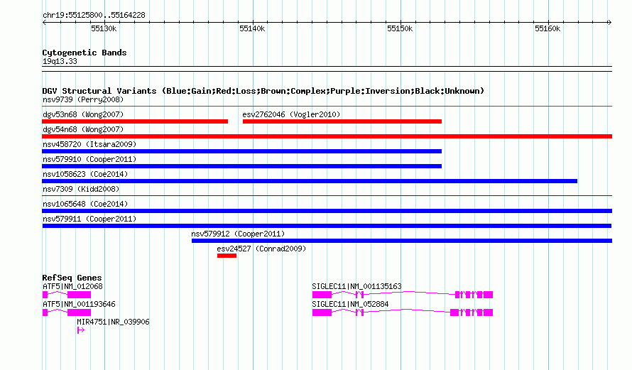 Variant DetailsVariant: nsv579911| Internal ID | 16367320 | | Landmark | | | Location Information | | | Cytoband | 19q13.33 | | Allele length | | Assembly | Allele length | | hg38 | 38429 | | hg19 | 38429 | | hg18 | 38429 |