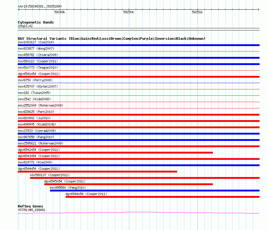 Variant DetailsVariant: nsv580131| Internal ID | 16367540 | | Landmark | | | Location Information | | | Cytoband | 19q13.42 | | Allele length | | Assembly | Allele length | | hg38 | 3500 | | hg19 | 3500 | | hg18 | 3500 |