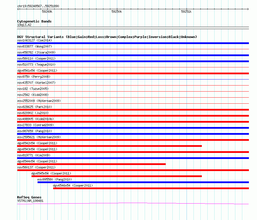 Variant DetailsVariant: nsv580135| Internal ID | 16367544 | | Landmark | | | Location Information | | | Cytoband | 19q13.42 | | Allele length | | Assembly | Allele length | | hg38 | 3324 | | hg19 | 3324 | | hg18 | 3324 |