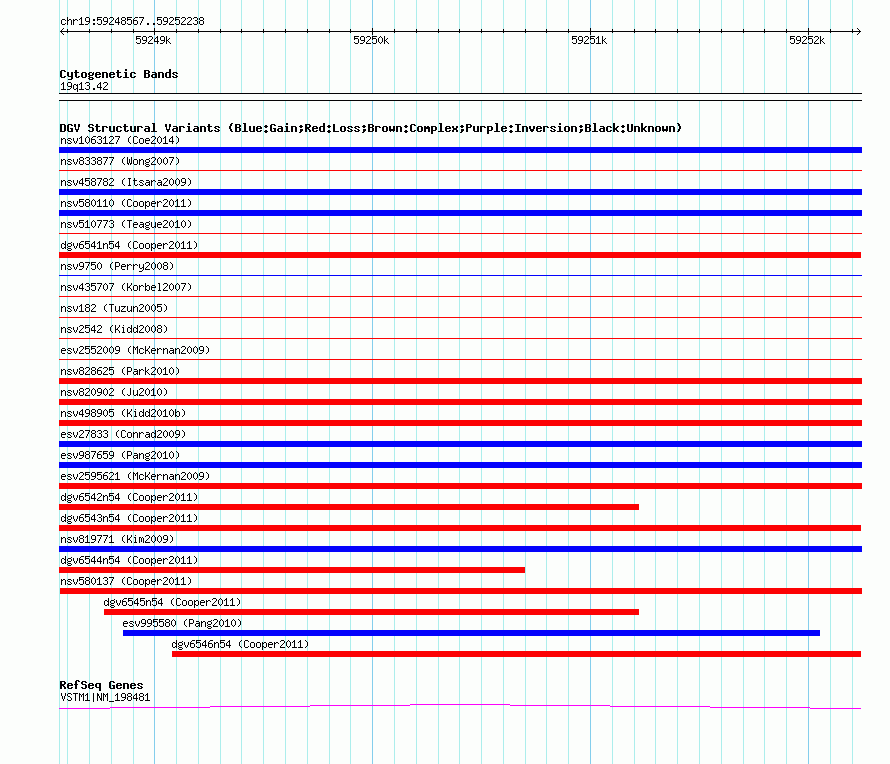 Variant DetailsVariant: nsv580136| Internal ID | 16367545 | | Landmark | | | Location Information | | | Cytoband | 19q13.42 | | Allele length | | Assembly | Allele length | | hg38 | 3672 | | hg19 | 3672 | | hg18 | 3672 |