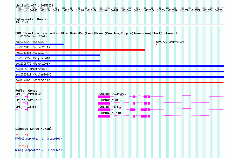 Variant DetailsVariant: nsv580342| Internal ID | 16367751 | | Landmark | | | Location Information | | | Cytoband | 19q13.42 | | Allele length | | Assembly | Allele length | | hg38 | 17955 | | hg19 | 17955 | | hg18 | 17955 |