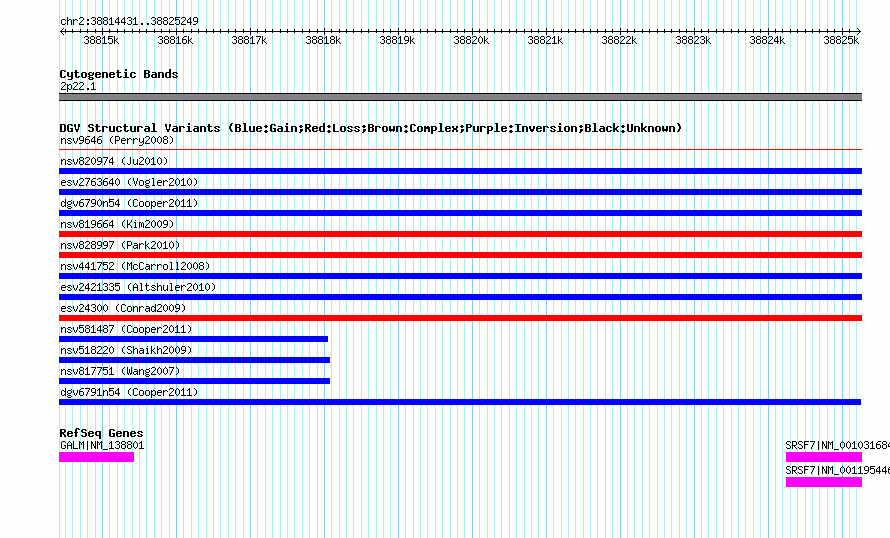 Variant DetailsVariant: nsv581492| Internal ID | 16022215 | | Landmark | | | Location Information | | | Cytoband | 2p22.1 | | Allele length | | Assembly | Allele length | | hg38 | 10819 | | hg19 | 10819 | | hg18 | 10819 |