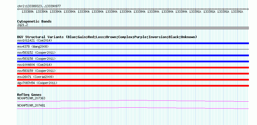 Variant DetailsVariant: nsv583164| Internal ID | 16023887 | | Landmark | | | Location Information | | | Cytoband | 2q21.2 | | Allele length | | Assembly | Allele length | | hg38 | 1655 | | hg19 | 1655 | | hg18 | 1655 |