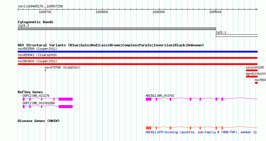| | Variant Type | CNV loss | | Copy Number | | | Allele State | | | Allele Origin | | | Probe Count | | | Validation Flag | | | Merged Status | M | | Merged Variants | | | Supporting Variants | nssv1151330 | | Samples | 1780854449_A | | Known Genes | ABCB11, G6PC2 | | Method | SNP array | | Analysis | Illumina SNP array copy number analysis | | Platform | Not reported | | Comments | | | Reference | Cooper_et_al_2011 | | Pubmed ID | 21841781 | | Accession Number(s) | nsv583600