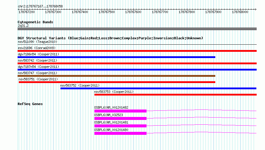 Variant DetailsVariant: nsv583750| Internal ID | 16371159 | | Landmark | | | Location Information | | | Cytoband | 2q31.2 | | Allele length | | Assembly | Allele length | | hg38 | 892 | | hg19 | 892 | | hg18 | 892 |