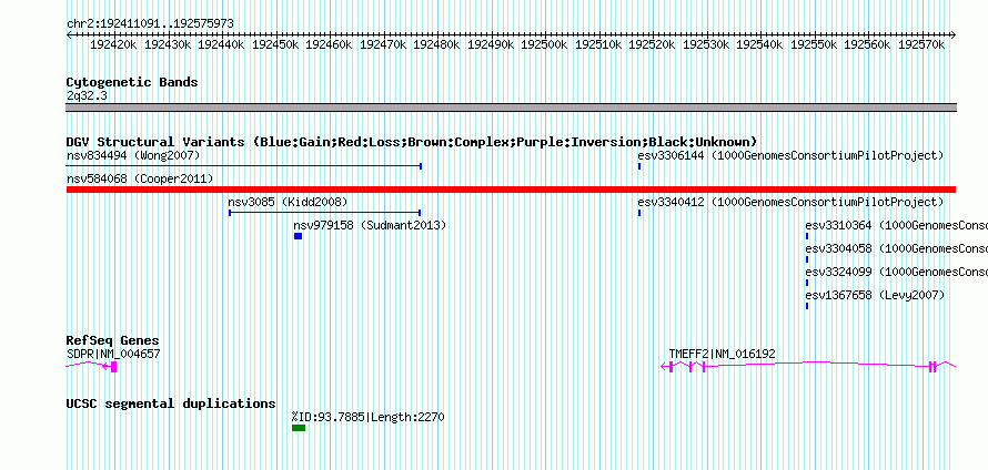 Variant DetailsVariant: nsv584068| Internal ID | 16024791 | | Landmark | | | Location Information | | | Cytoband | 2q32.3 | | Allele length | | Assembly | Allele length | | hg38 | 164883 | | hg19 | 164883 | | hg18 | 164883 |