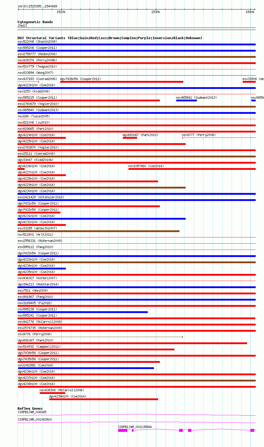 Variant DetailsVariant: nsv585247 | Internal ID | 16372656 | | Landmark | | | Location Information | | | Cytoband | 20p13 | | Allele length | | Assembly | Allele length | | hg38 | 25095 | | hg19 | 25095 | | hg18 | 25095 |