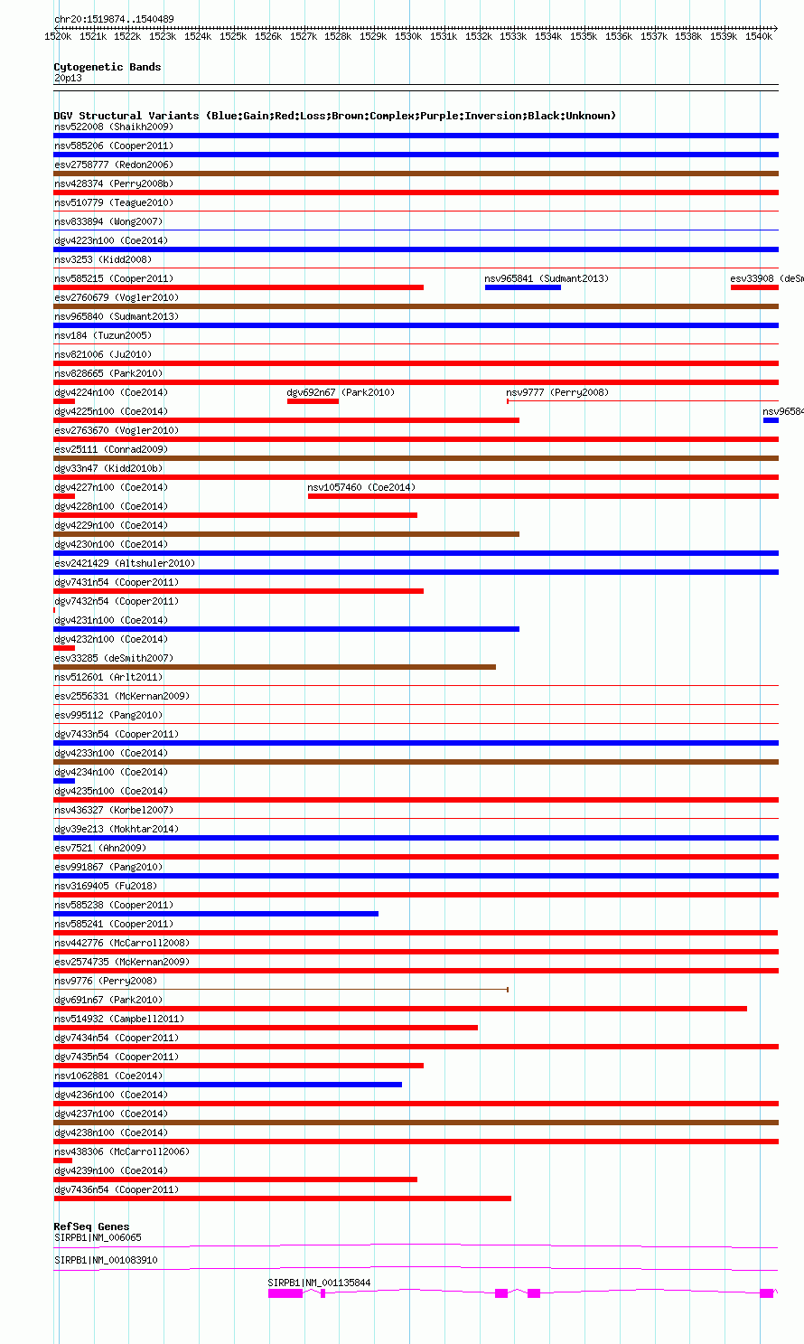 | | Variant Type | CNV loss | | Copy Number | | | Allele State | | | Allele Origin | | | Probe Count | | | Validation Flag | | | Merged Status | M | | Merged Variants | dgv7434n54 | | Supporting Variants | nssv936698, nssv936762, nssv936726, nssv936800, nssv936837, nssv936757, nssv936803, nssv936699, nssv936720, nssv936754, nssv936718, nssv936791, nssv936766, nssv936819, nssv936701, nssv936781, nssv936714, nssv936747, nssv936763, nssv936809, nssv936836, nssv936831, nssv936793, nssv936844, nssv936735, nssv936706, nssv936756, nssv936833, nssv936729, nssv936724, nssv936774, nssv936795, nssv936715, nssv936775, nssv936734, nssv936820, nssv936843, nssv936769, nssv936834, nssv936796, nssv936703, nssv936807, nssv936741, nssv936739, nssv936713, nssv936805, nssv936818, nssv936799, nssv936737, nssv936798, nssv936827, nssv936840, nssv936780, nssv936823, nssv936752, nssv936743, nssv936845, nssv936702, nssv936812, nssv936786, nssv936711, nssv936792, nssv936815, nssv936740, nssv936846, nssv936838, nssv936704, nssv936770, nssv936802, nssv936839, nssv936708, nssv936731, nssv936804, nssv936784, nssv936817, nssv936768, nssv936728, nssv936797, nssv936785, nssv936730, nssv936835, nssv936773, nssv936725, nssv936750, nssv936794, nssv936723, nssv936824, nssv936801, nssv936767, nssv936789, nssv936778, nssv936772, nssv936811, nssv936721, nssv936761, nssv936744, nssv936705, nssv936848, nssv936764, nssv936742, nssv936810, nssv936753, nssv936830, nssv936727, nssv936816, nssv936832, nssv936829, nssv936716, nssv936738, nssv936758, nssv936745, nssv936722, nssv936826, nssv936707, nssv936782, nssv936828, nssv936787, nssv936821, nssv936783, nssv936710, nssv936814, nssv936822, nssv936736, nssv936777, nssv936765, nssv936719, nssv936841, nssv936813, nssv936808, nssv936751, nssv936847, nssv936709, nssv936788, nssv936790, nssv936717, nssv936771, nssv936759, nssv936712, nssv936733, nssv936779, nssv936749, nssv936806, nssv936776, nssv936732, nssv936842, nssv936700, nssv936748, nssv936755, nssv936760, nssv936825, nssv936746 | | Samples | | | Known Genes | SIRPB1 | | Method | SNP array | | Analysis | Illumina SNP array copy number analysis | | Platform | Not reported | | Comments | | | Reference | Cooper_et_al_2011 | | Pubmed ID | 21841781 | | Accession Number(s) | nsv585252