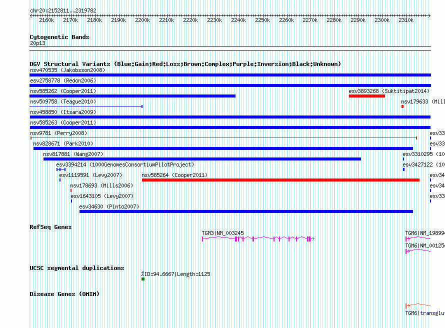 Variant DetailsVariant: nsv585263| Internal ID | 16025986 | | Landmark | | | Location Information | | | Cytoband | 20p13 | | Allele length | | Assembly | Allele length | | hg38 | 166972 | | hg19 | 166972 | | hg18 | 166972 |