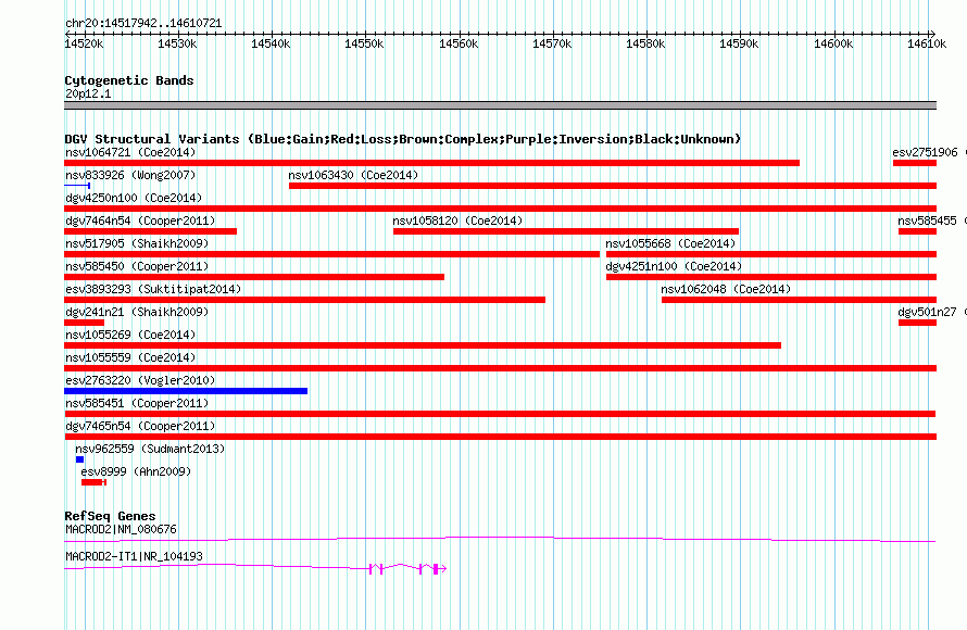 Variant DetailsVariant: nsv585451| Internal ID | 16372860 | | Landmark | | | Location Information | | | Cytoband | 20p12.1 | | Allele length | | Assembly | Allele length | | hg38 | 92780 | | hg19 | 92780 | | hg18 | 92780 |