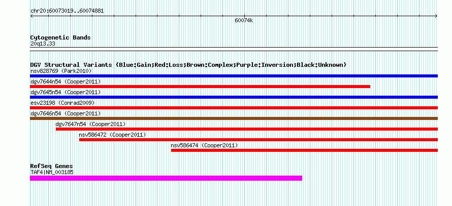 Variant DetailsVariant: nsv586462| Internal ID | 16373871 | | Landmark | | | Location Information | | | Cytoband | 20q13.33 | | Allele length | | Assembly | Allele length | | hg38 | 1863 | | hg19 | 1863 | | hg18 | 1863 |
