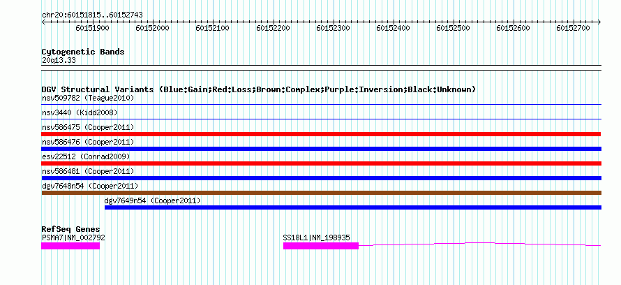 Variant DetailsVariant: nsv586478| Internal ID | 16373887 | | Landmark | | | Location Information | | | Cytoband | 20q13.33 | | Allele length | | Assembly | Allele length | | hg38 | 929 | | hg19 | 929 | | hg18 | 929 |
