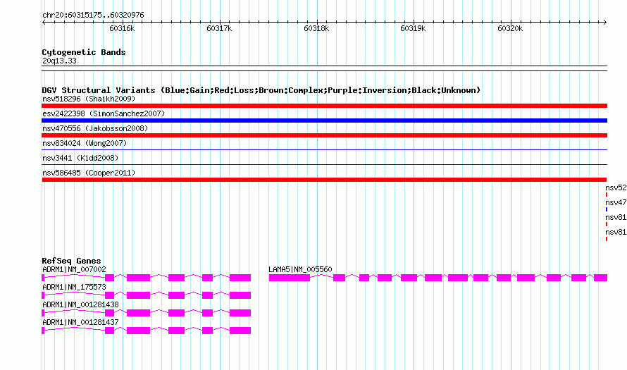 Variant DetailsVariant: nsv586485| Internal ID | 16373894 | | Landmark | | | Location Information | | | Cytoband | 20q13.33 | | Allele length | | Assembly | Allele length | | hg38 | 5802 | | hg19 | 5802 | | hg18 | 5802 |