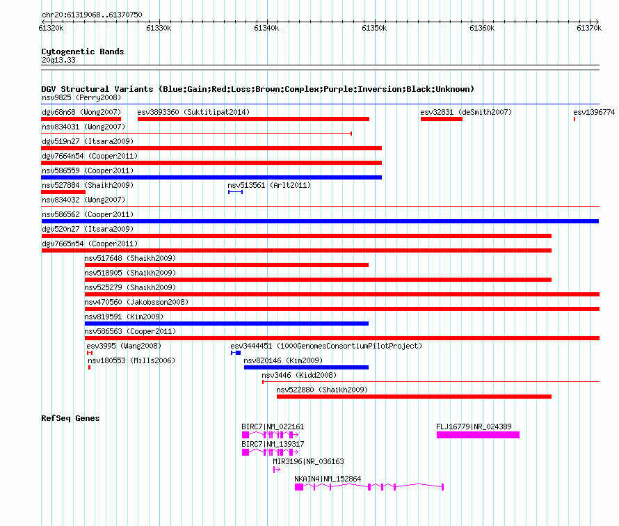| Known Genes | BIRC7, FLJ16779, MIR3196, NKAIN4 |