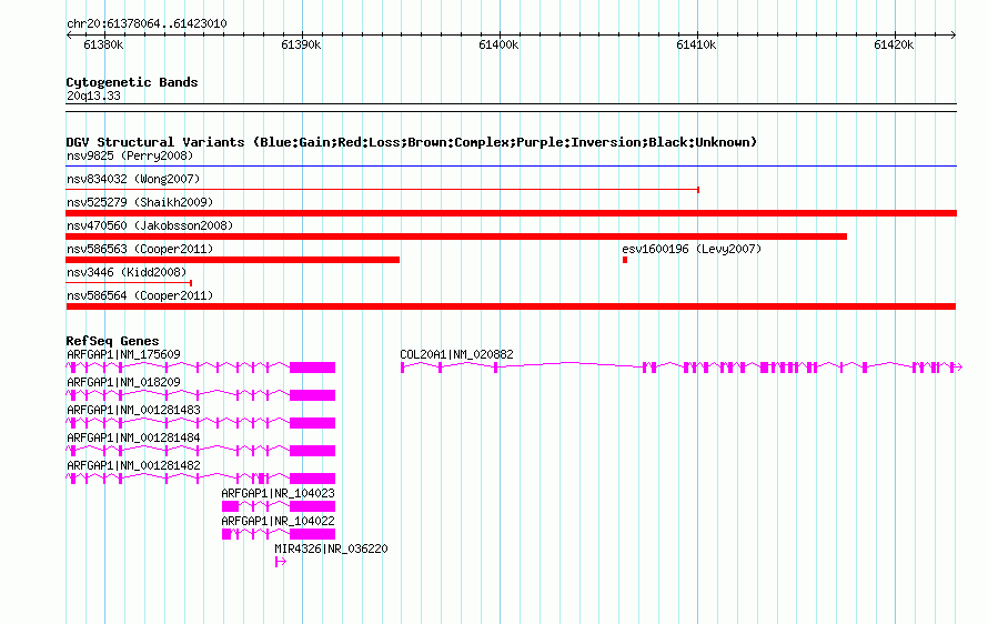 | Known Genes | ARFGAP1, COL20A1, MIR4326 |