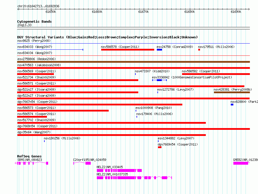 | Known Genes | C20orf195, GMEB2, HELZ2, SRMS |