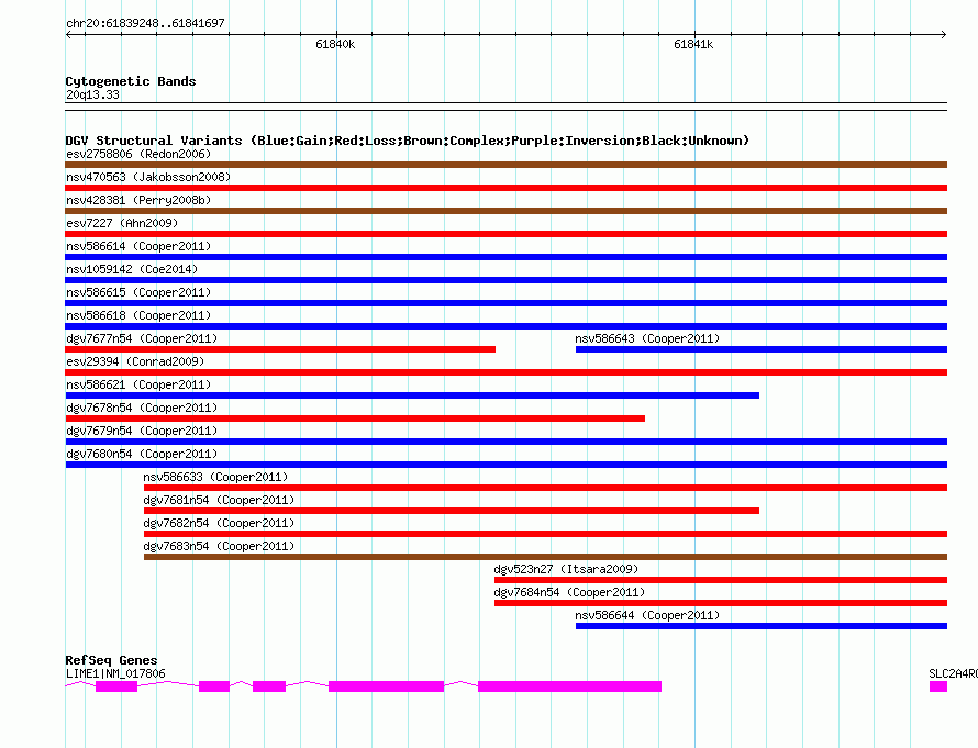 Variant DetailsVariant: nsv586622| Internal ID | 16374031 | | Landmark | | | Location Information | | | Cytoband | 20q13.33 | | Allele length | | Assembly | Allele length | | hg38 | 2450 | | hg19 | 2450 | | hg18 | 2450 |