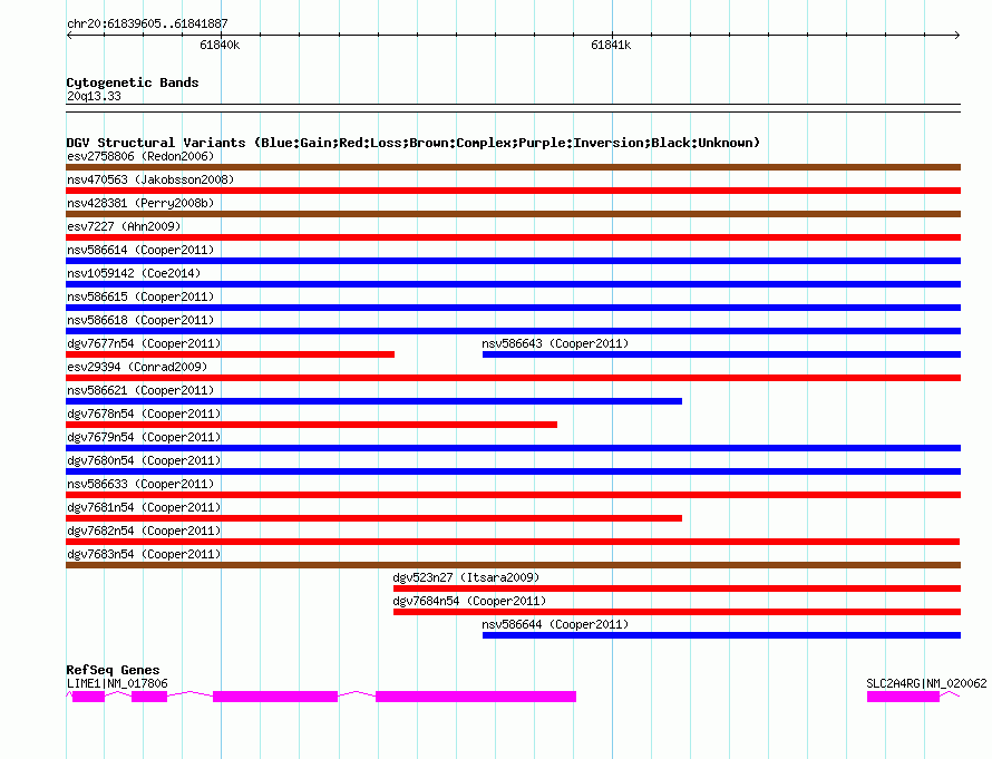 Variant DetailsVariant: nsv586637| Internal ID | 16374046 | | Landmark | | | Location Information | | | Cytoband | 20q13.33 | | Allele length | | Assembly | Allele length | | hg38 | 2283 | | hg19 | 2283 | | hg18 | 2283 |