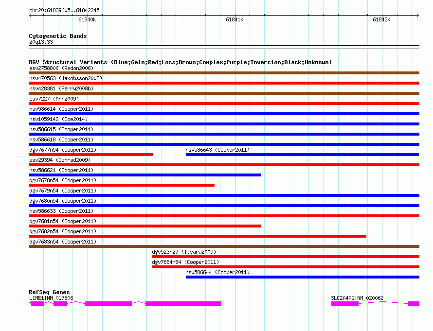 Variant DetailsVariant: nsv586638| Internal ID | 16374047 | | Landmark | | | Location Information | | | Cytoband | 20q13.33 | | Allele length | | Assembly | Allele length | | hg38 | 2641 | | hg19 | 2641 | | hg18 | 2641 |