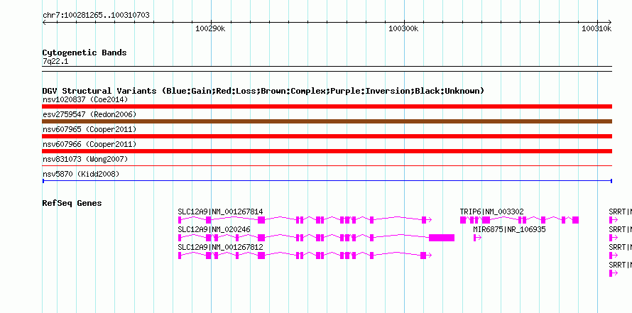 | Known Genes | MIR6875, SLC12A9, SRRT, TRIP6 |
